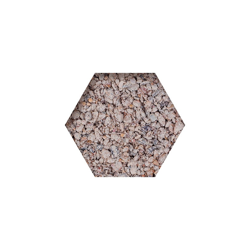 Mieszanka mineralna w glinianej miseczce składająca się z mąki z muszli ostryg, żwiru żołądkowego, prosa i alg koralowych.