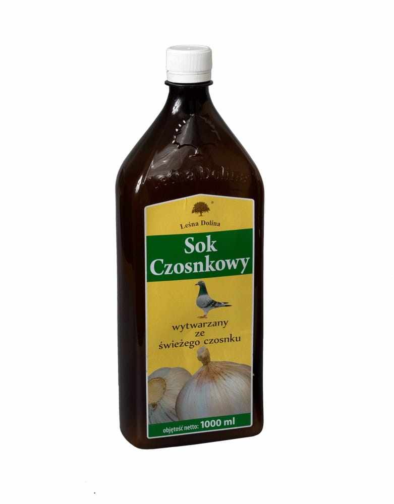 Sok czosnkowy firmy „Leśna Dolina” to naturalny produkt podnoszący witalność gołębi. Do jego wytwarzania używamy świeżego polskiego czosnku. Sok nie zawiera dodatków wzmacniających smak i zapach.