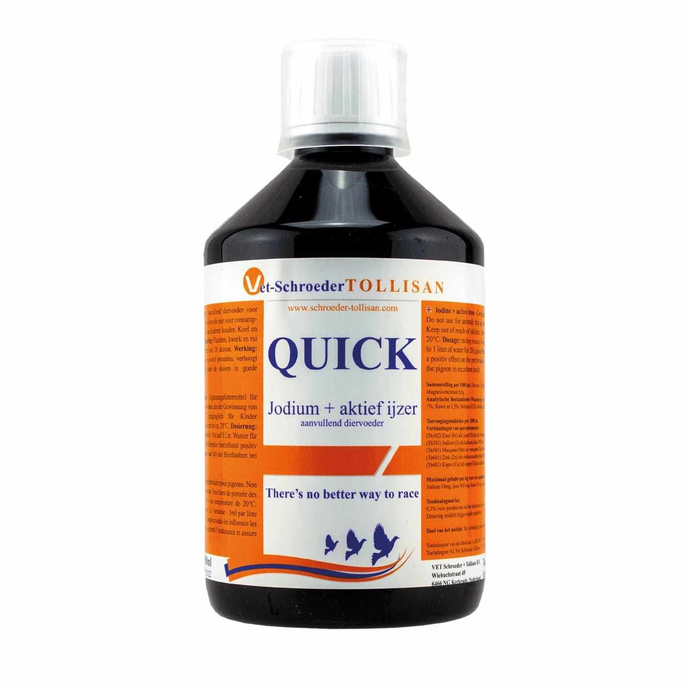 Dodając Quick (jod i żelazo), zwiększymy wydajność gołębi. Wzbudzenie funkcji tarczycy, zwiększa wytrzymałość i prowadzi, w połączeniu z żelazem, do większej szybkości. W połączeniu z Dosto-Oregano Flüssig 12% możliwe są zdumiewające efekty, przede wszystkim u młodych gołębi.
