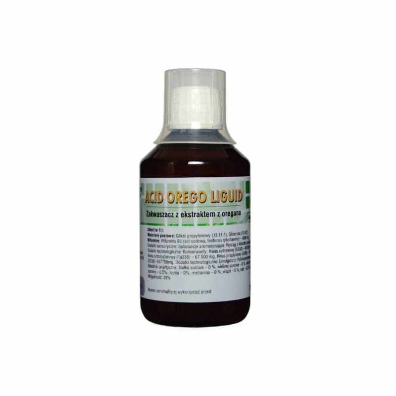 Acid Orego Liquid to unikalne połączenie ekstraktu z oregano i kwasów organicznych. Substancje czynne zawarte w wyciągu z oregano (karwakrol i tymol) poprawiają apetyt i wspierają procesy trawienne. Kwasy organiczne promują rozwój naturalnej mikroflory, dzięki czemu wspomagają utrzymanie homeostazy układu pokarmowego.