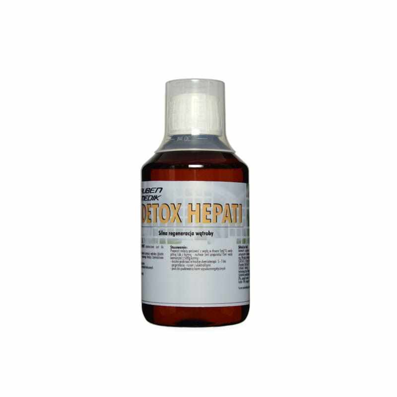 Detox Hepati to nowy produkt zapewniający bardzo szybką i skuteczną regenerację wątroby. Preparat zawiera maksymalną zawartość substancji czynnych oraz skład skorelowany na szybką regenerację hepatocytów. Detox Hepati zapewnia lepszą przemianę marerii. Przywraca sprawność funkcjonalną wątroby, przyśpiesza pasaż treści jelitowej, pobudza sekrecję enzymów oraz ułatwia trawienie tłuszczy tak niezbędnych podczas lotów. Wskazany przy zatruciach mykotoksynami oraz w polekowym uszkodzeniu wątroby.