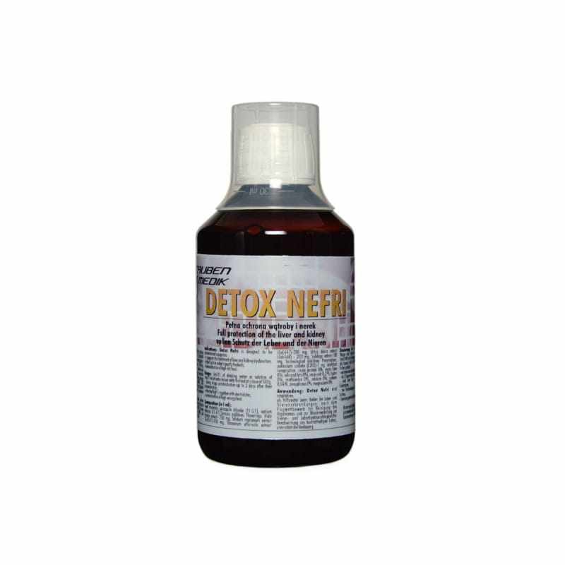 Detox Nefrii to nowa wzbogacona receptura oparta na wieloletnich doświadczeniach w żywieniu ptaków. Większa zawartość substancji czynnych pozwala na pełniejszą ochronę wątroby oraz nerek. Stosowany zapobiegawczo Detox Nefri zapewnia lepszą przemianę materii. Przywraca sprawność funkcjonalności nerek, przyspiesza pasaż treści jelitowej, pobudza sekrecję enzymów oraz ułatwia trawienie tłuszczy tak niezbędnych podczas lotów. Bardzo dobrze sprawdza się bezpośrednio po locie. Można go podawać razem z elektrolitami. Detox Nefri bardzo dobrze sprawdza się jako preparat wspomagający leczenie chorób nerek wypłukując metabolity oraz bakterie.