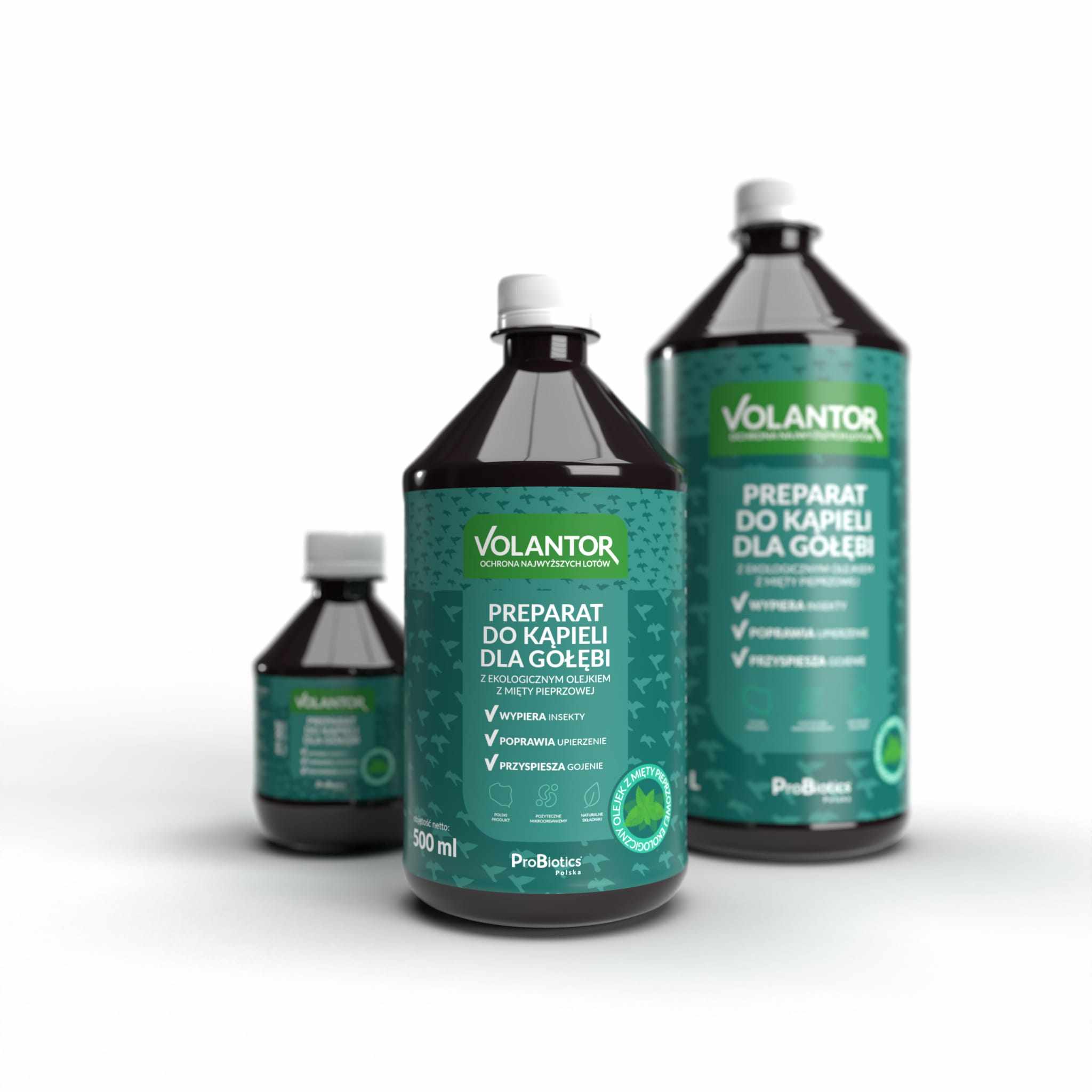 Volantor preparat do kąpieli dla gołębi to naturalny, płynny preparat mikrobiologiczny, niezastąpiony w hodowli gołębia sportowego: pocztowego, akrobatycznego, wysokolotnego. Szczególnie zalecany w okresie przygotowawczym do lotów sportowych, w okresie lęgowym, podczas pierzenia. Stosowany profilaktycznie poprawia dobrostan stada. Zawiera wyłącznie naturalne i niemodyfikowane genetycznie składniki, w tym kompleks żywych, aktywnych, pożytecznych mikroorganizmów.
